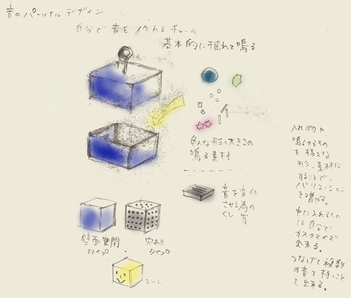 次に、音のカスタマイズが出来る小さいチャームを作って、ネックレスやストラップにして身につけられるようにしたらどうかと思いました。